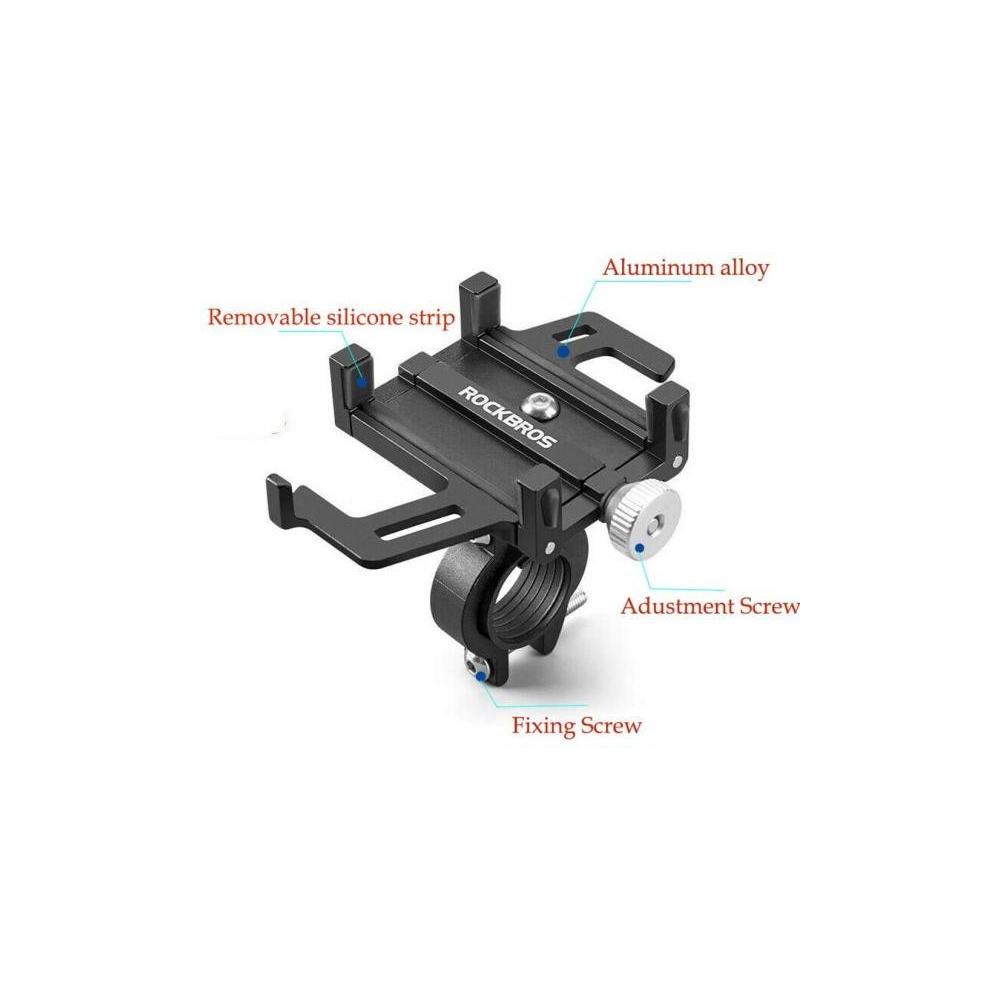 značka Rockbros, materiál : odolný dural, pre rôzne druhy telefónov, otočný o 360 stupňov, s funkciou zafixovania polohy, so silikónovou výstelkou, pre riaditka 22,2 až 31,8 mm, váha 115g, balené v krabičke