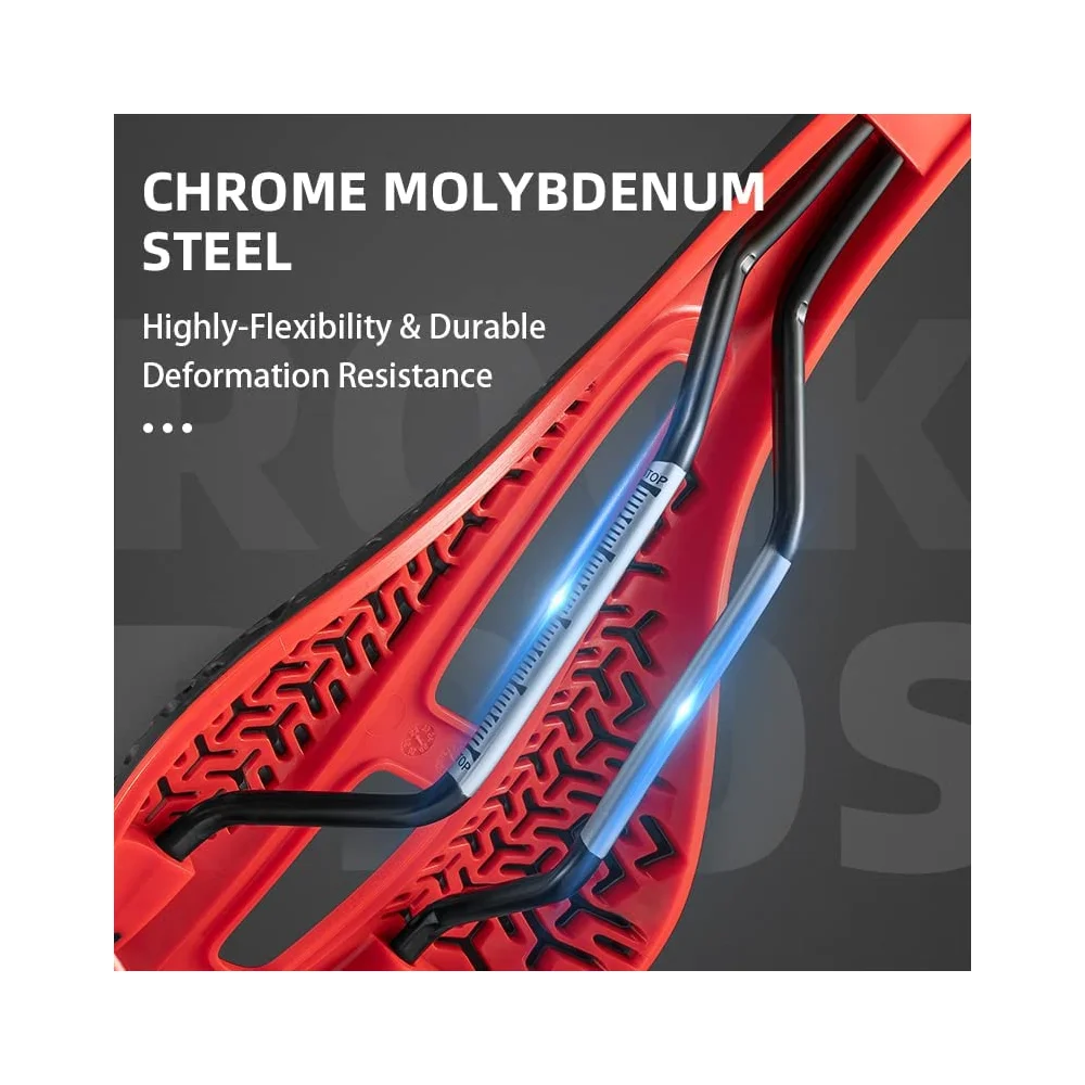 Na rozdiel od tradičného PU sedla má naše sedlo vynikajúci prevzdušňovací výkon. Je vhodné pre profesionálnych jazdcov aj amatérov.Sedlo je odolné a trvanlivé. Vyrobené z 85% nylonu a 25% sklolaminátu. Rozmer škrupiny 28 x 15,7 cm. Tento kompozitový materiál má vynikajúcu odolnosť proti starnutiu, zaisťuje až 10 000 hodín jazdy. Lyžiny sedla sú vyrobené z chróm molybdénovej ocele, ktorá je ľahká a pevná. Sedlo je vybavené protišmykovým poťahom PTFE. Vďaka špeciálnemu kompozitu má sedlo dobrú odolnosť proti nárazu a rozlomeniu. Farba čierna. Váha 258 g. Balené v krabici Rockbros