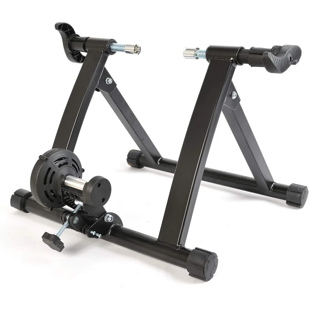 Dĺžka: 50cm, šírka: 54cm, výška: 47cm. Jemné doladenie výšky pomocou plastových dielov na nohách trenažéra. Príslušenstvo k produktu: cyklistický trenažér × 1, magnetická odporová jednotka × 1, nastavenie prítlaku x 1, kľúč na matice x 1, montážny kľúč × 1. Materiál: oceľ a dural. Rozmer: 54 × 47 × 41cm. Hmotnosť: cca 7,9kg.